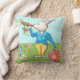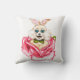 Konstnär Kristie Hubler, vit kanin som blåser på morothorn, könscur med daisy med snurrning, okontrollerad händer på ena sidan av kudden, goofykanin som sticker upp från te ro tekopp på andra sidan