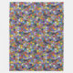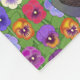 Grackles and pansies - upprepa Sarah Knight illustration av mönster. Gräsfåglar, blåa, oliv grönt, bruna, lila. Pansy-blommor i mörk violett, röd, magenta, plommon, tangerinens orange, gult, vit och lavender. Färgfull, djärv, trädgård mönster.