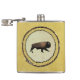 En galloping-bison målas på hudsidan av en bäver som är sträckt på en vig ring. Bison (Bison bison), det största landdäggdjuret i Nordamerika, betraktas som en nyckelpelare: de gång kontinenten i underbara besättningar, och deras betetryck bidrog till att forma ekologin på de Underbara slätterna. Två underarter eller ekotyper har beskrivits: slättabison (Bison bison bison), mindre storlekt och med mer rundad hump, och träbison (Bison bison atabascae) - den större av de två och med en längre, kvadratisk hump. Bison är en relativ nykomling till Nordamerika, som har sitt ursprung i Eurasien och migrerade över Beringsundet för ungefär 10 000 år sedan den ersatte stäppbison (Bison priscus), en tidigare invandrare som var mycket större. Man tror att stäppbison blev utdödat på grund av ett föränderligt ekosystem och jakttryck till följd av utvecklingen av Clovis-punkten och tillhörande teknik, och förbättrade jaktfärdigheter. Under samma period försvann andra megafauna och ersattes i viss mån av invandrareurasiska djur som var bättre anpassade till rovdjur. Den befintliga bison, tekniskt sett en dvärgform, var ett av dessa djur. Det fanns uppskattningsvis 20-30 miljoner gång, även kallat buffel, i Nordamerika. Deras utbredningsområde omfattade ungefär en triangel mellan Underbara Bear Sjö i Kanadas nordvästra del, söder om Mexikanska staterna Durango och Nuevo León, och öster längs den westerna gränsen för bergsområdena i Appalachian. De första genomfarterna i Nordamerika, med undantag för det tidsutplånade väg av mastodon eller musko, var de spår som fås av bison och hjort i migrationen från säsong och mellan matande platser och saltslicka. Många av dessa rutter, som hammerats av oräkneliga hissar instinktivt efter vattenshylsor och vapensköldarna av gyttar för att undvika lägre sommarslam och vintersnöborrningar, följdes av inhemska amerikaner och var ovärderliga för utforskarna. Termen "buffel" kan betraktas som en felbenämning för detta djur, eftersom den endast har ett distinkt samband med någon av de två "verkliga bufflarna", den asiatiska bufferten vatten och den afrikanska buffeln. Men "bison" är ett grekiskt ord-liknande djur, medan "buffel" härstammar från de Fransk päls-fångarna som kallade dessa massiva beaster boeufs, dvs. räv eller oxe - så både namn, "bison" och "buffalo" har en liknande innebörd. När det gäller detta djur har termen "buffel", som data till 1635, en mycket längre historia än termen "bison", som först registrerades 1774.Den amerikanska bison har ett närmare samband med den kloka eller europeiska bison. Oreglerad jakt på bison, som kulminerade i massslakt under 1870-talet, minskade populationen till 1 091 år 1889. I dag bor ungefär 500 000 bison över Nordamerika. De flesta är inte rena bisonger utan har tidigare fötts upp i kor med boskap och föds upp som boskap på rancher. Färre än 30 000 bison finns i bevarandebesättningar, och färre än 5 000 är fria och sjukdomsfria. I dag utdödas bison ekologiskt i större delen av sitt historiska område, förutom för några få parker och andra mindre vildmarksområden. Yellowstone National Park har den största populationen av fritt roamingslätter bison (cirka 4 000), och Wood Buffalo nationalpark har den största populationen av fritt roamingvirke bison (cirka 10 000). En bison har en strålande, lång, mörk brun vinter jackar och en ljusare, ljusbrun sommar jackar. Vintern jackar så tjockt och isolerat att snö kan täcka sina ryggar utan att smälter. Manlig bison är något större än hondjur. Plainbison väger vanligtvis mellan 700 och 200 lbs. Den tyngsta tjuren någonsin i vilden vägde 2 800 lbs. När bison höjs i fångenskap och odlas för kött kan den växa onaturligt tung och den största halvdomestic bison väger 3 800 lbs. Huvudena och framkvartsparterna är enorma, och båda könen har kort, böjda horn som kan växa upp till 2 fot långa, som de användor i kampen för status inom besättningen och för försvar. Bison är växtätare som betar på gräsarna och sedlarna i de nordamerikanska bönorna. Deras dagliga schema omfattar två timmars perioder av bete, vila och tuggning och sedan flytta till en ny plats för bete igen. Detta reguljära rörelse garanterar att bison sällan överskattar ett område. Bison gnuggar och rullar ofta på marken och skapar ytlig, sågliknande depression som kallas wallow. Bison roll in wallow, blöt eller dry, som täcker sig själva med damm eller lera. Tidigare förklaringar och aktuella hypoteser som föreslås för att svälja är bland annat gromningsbeteende i samband med utsöndring, manlig-manlig interaktion (typiskt ruttbeteende), social-beteende för gruppsammanhållning, lekbeteende, hudirritation på grund av bitande insekter, minskning av fästingar och löss samt termoreglering. Vall var gång ett vanligt inslag i slätterna. På vintern kan bison gräva genom djupt snö med sina huvuden för att nå vegetationen under. Bison har dålig syn, men har akut hörsel och en utmärkt luktkänsla. Bison kan nå hastigheter på upp till 35 mph. Bison har en förväntad livslängd på cirka 15 år i vilden och upp till 25 år i fångenskap. Bison kompis i vår och sommar i öppnare områden. Under höst och vinter brukar bison samlas i fler skogsområden. Under den här tiden partar man bison i horning. De kommer att gnugga sina horn mot träd, unga sticklingar och till och med telefonstolpar. Aromatisk träd som cedarer och gräs tycks föredras. Det verkar som om insekten försvaras genom att det oftast sker i samband med nedgången när den insekt populationen är som högst. Cedar och gräs avger en arom efter bison horn och detta verkar användas som ett avskräckningsmedel för insekter. Även om bison ofta skyddas från predation på grund av sin storleka och starka ställning är den i vissa områden regelbundet föråldrad av vargar. Vargens predation n