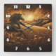 Galloping Horse through Golden Fält at Sunset Fyrkantig Klocka