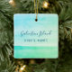 Gorgous teal ombre-vattenfärg framhäver Galveston Island, Texas longitud- och latitudkoordinater.