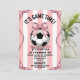 This sporty-chic design features bold pink stripes paired with an adorable bow accent, creating the perfect mix of athletic energy and girly charm. Ideal for little soccer stars who love the game, this invitation sets the tone for a fun “Game Time” birthday celebration filled with goals, giggles, and team spirit.