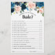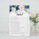 Mörkens blåblått blommigt-spelkort "Hur väl känner du till bruden?" med elegant bukett av marinblått, royal blått, vitt, ro och sage grönt eucalyptus möhippa. Kontakta mig om du behöver hjälp med anpassning eller om du behöver någon annan produkt med den här designen.