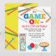 Vår ursprungliga, bäst säljande Game On Arcade pizza födelsedagsfest inbjudan är den perfekta inbjudan för alla speltemafester med ett arkad, laser tag eller pizza tema. Denna design har färgglada bokstäver med roliga arkadspel, ballonger och pizza grafik.