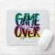 A colorful gaming-inspired typographic design featuring bold gradient lettering that reads “Game Over,” accented with a game controller icon and the phrase “Let’s Play Again!” for a fun, retro-gamer vibe.