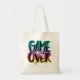 A colorful gaming-inspired typographic design featuring bold gradient lettering that reads “Game Over,” accented with a game controller icon and the phrase “Let’s Play Again!” for a fun, retro-gamer vibe.