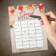 Gäst Bingo Fall Shower Party Game Anteckningsblock Pack på 40. Lätt att riva bort och skriva på. Hitta någon som passar in i bilden och få dem att skriva under din låda. Först med fyra i rad vinner! Med vacker, ljusstark höst löv på en tvättat träbakgrund.