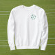 Game Set Match, grön monogram, tennisvita sweatshirts. Anpassa med din initial. Perfekt för en lokal tennisturnering, som en present till en tennisfan eller för en tennistematiserad möhippa. Designad för att matcha vår Game Set Match Tennis Collection.