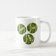 Kaffe mugg har trio av tennis bollar med textövertäckningar med texten "Spel, set och Match".