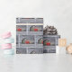 Gamla träen Michigan-ladan med röda dörrar på vintern snö och träd.