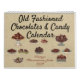 I den här kalendern visas vintagar från färg av gammaldags choklad och godis från 1909.
