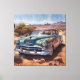 Gamla, blå, övergiven bil i öknen för mycket canvastryck