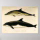 Gammal illustration marinliv delfiner av Joseph Smit. Den övre delfinen är en Delphinus delphis; kortnäbbad delfin. Den nedre delfinen är en Delphinus tursio; en variant av flasknosdelfin som liknar späckhuggaren, eller späckhuggare.