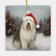 Gamla engelska fårhunden i Snö jul Julgransprydnad Keramik
