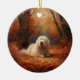 Gamla engelska Sheepdog i Höst löv Fall Inspire Julgransprydnad Keramik