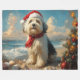 Gamla engelska Sheepdog-julets Vintage Beach Fleecefilt