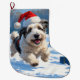 Gamla engelska Sheepdog Runin i Snö jul Hat Stor Julstrumpa