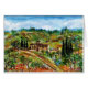 Oljemålning av Bulgan Lumini (c)Toscanskt landskap,färgstarkt,vibrerande,italiensk kulturskönhet,grönt backe,poppies, blomma fält, antika rustiska byn,akrylmålning i ljust gult,orange,röd,blå färg,2008 Toscana-Italien
