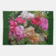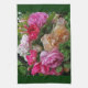 Vad skulle kunna vara mer än en bukett av gammaldags ro? Den här kökshandduken visningar en utsökt utformning av rött, rosa, aprikos och vitt antika ro som avges av sin vackra grönt foliage.