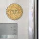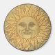 Vintage-stil leende sol-ansikte. Vattenfärg i gult och blå nyans, accentuerad i guld.