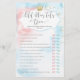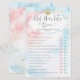 Det här babyduschspelkortet har ett skript med modernt typsnitt på rosa och blå bakgrund, perfekt för gender visar party!