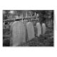 Dessa gamla stenstenar markerar gravar i Laurel Backe-kyrkogården. Historiska kyrkogårdar kan ha goda, ärliga eller skämtsamma egenskaper för dem. Detta svarta och vita foto kastar ett skarpt, blekt, grumligt ljus på nekropolis. Vissa finner kyrkogårdar skrämmande, skrämmande eller makabra. Andra finner kyrkogårdar fredliga och vackra.