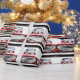 Gamla röda lastbil inslagna pappert för att alla julklappar eller födelsedagskalkeringar ska inslagas.