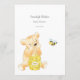 Ett roligt för babyduschen är det gamla duvslaget. Det här spelkortet har blå blommigtar överst. På motsatt sida lutar en nalle på en honungsfat som tittar på ett honungsbin med mallar.