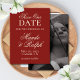 Lägg märke till din stora dag med tidlös stil med hjälp av det här gamla Lodrät "Fet röd valuta" Foto Spara datum. Det här kortet visar elegans och romantik och har en djup, klassisk röd bakgrund med ditt favoritfoto i kombination med förfinad kalligrafi. Ett val av perfekt för par som vill ha ett formellt men personligt sätt att nyheterna, det anger tonen för ett sofistikerat firande för komen.