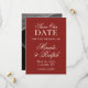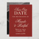 Lägg märke till din stora dag med tidlös stil med hjälp av det här gamla Lodrät "Fet röd valuta" Foto Spara datum. Det här kortet visar elegans och romantik och har en djup, klassisk röd bakgrund med ditt favoritfoto i kombination med förfinad kalligrafi. Ett val av perfekt för par som vill ha ett formellt men personligt sätt att nyheterna, det anger tonen för ett sofistikerat firande för komen.