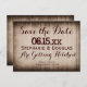 Det är perfekt att tillkännage ett kommande landsbyggsbröllop. Lägg bara till bridens namn och bröllop-datum, tillsammans med plats och annan information som du vill inkludera i den här lättförståeliga användan. Lägg sedan till returadressen på baksidan. Spara pengar på porto genom att skicka ut dem som vykort. Rustit spara datumkort, land spara datumvykort, bröllop spara datum, få tag på sparade datum, roligt söt snyggt, land western spara datumkort, lada wood spara datumkort, rustiskt trä spara datumkort