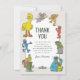 Det här förtjusande tackkortet är det perfekta sättet att uttrycka tacksamhet efter en liten enes födelsedagsfest med det klassiska Sesam-temat! Designen visar en glad ram med älskade figurer, inklusive Storlek, Zoe, Grover, Elmo, Oscar, Kukimuk, Bert och Ernie, alla i en charmig skisskonststil. Det framträdande "TACK" -meddelandet kompletteras med ett hjärtligt författat meddelande och ett anpassningsbart utrymme för barnets namn, vilket gör det till ett varmt och nostalgiskt sätt att visa uppskattning för gästerna.