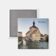 Den här souvenir-magneten har ett foto av Gamla stadshuset och Obere Bridge, Bamberg, Bayern, Tyskland taget på kvällen. Texten är anpassade eller flyttbar. Magneterna är en idealisk gåva, eller en personlig present för att sätta på kylskåpet eller arkivskåpet. Den här kvadratiska magneten är 2 tum x 2 tum (5 cm x 5 cm) eller så kan du välja mellan en rund magnet i olika storlekar.