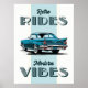 För in det förflutna i nuet med den här snyggten grafik som har ett klassiskt vintage bil parsat med den fet texten "Retro Rides, Modern Vibes". Perfekt för dem som uppskattar tidlös design och en contemporary-tvist, utstrålar biet charm och personlighet för vilket utrymme eller vilken samling som helst.