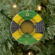 Gammal akustisk gitarr med jamaikansk flagga julgransprydnad keramik