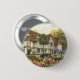 Gammal illustrativ arkitektonisk bild med ett klassiskt engelskt lantställe eller herrgård med halmtak och vacker engelsk formell trädgård med blommande blommor på våren. Kan vara ett vackert lanthotell med frukost.
