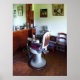 Utformning av en gammaldags barberaffär med en vintage barberstol och barber på disken.