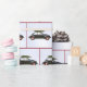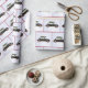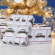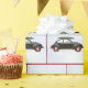 Hund i gamla svarta bilar med Julgran i snöflingor.