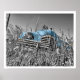 Gammal blå bil i Fält av gräs Poster