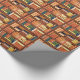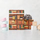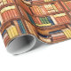 Beställnings- slående in papper som presenterar en vintagemönsterillustration av träbokhyllor, fyllde med färgrika gammala bokar. Ett roligt gåvapapper för en bokälskare, en avid avläsare, en lärare, en bibliotekarie, en författare eller ett boklager.
