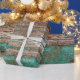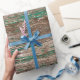 Gammal brunblå bakgrund av trä med skalsmärta presentpapper