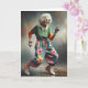 Gammal dam som dansar och bär blommiga byxor och sneakers för att fira att hon blir äldre på födelsedagen.