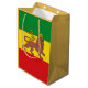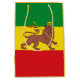 Etiopiens historiska flagga. Rött, gyllene och grönt vågrät rand med Lejon av Judah med krona och spjut i centrum. under perioden 1897-1974