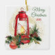 Här är en söt Helgdag som ger en trevlig familjegåva till en granne, vän eller någon på din presentlista. På framsidan och baksidan finns en nostalgisk bild av en lyst röd lampa som sitter i en gräs-dekorerad träd-lampa och gräs-koner. Bakom bilden finns en subtil snurra av liten guld-konfetti, och det finns två anpassningsbar fält i matchande grönt och rött på högerna. Allt placeras på en vit snö-bakgrund. Baksidan av dekorationen har ytterligare två fält som du kan anpassa.