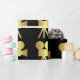 Filmkamerapresenten av den gamla vintagen Metallic guld, som omsluter papper. Tillfällens presentfigursättning för film- och tv-filmköp. Filmkamera i metallisk vintage i Guld på svart bakgrund. Anpassa den pappra bakgrunden färg så att den passar din smak och stil.