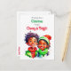 Ett söt julvykort med en söt liten flicka och en liten pojke från färg i grönt och röd med snöflingor Retro som känner sig gammaldags jul.