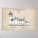 Gamla Mackinac Point Light Lighthouse - Michigan - blåavtryck teckning