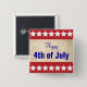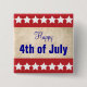 Den här fyrkantiga knappen har en gammal papper bakgrund, röd rand med vita stjärnor överst och grund och texten i anpassadet som lyder: Lycklig 4 juli.