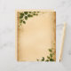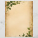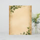 Färgad med ålder, sliten, foxed och smuddad, med grönt löv i följd, detta papper är perfekt för avslappnad korrespondens. Baksidan är samma åldras som färg som framsidan, lämnat slät, utan löv eller grunge.