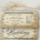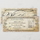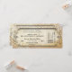 Guld Medeltida Renässans Destination Biljett Elegant Gammalt Papper, Filigran Flourish Inspirerad Typografi Gammaldags Bröllopsinbjudan. Distressed Damask Gammal Hollywood, Bioteater Playbill stil, Roaring 20s Great Gatsby, Bröllopsinbjudningar. Mormor Chic Bröllop,